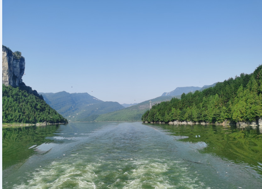 整条航线从旅游码头一直行驶到蝴蝶崖然后原路返程,沿途经过红花峡、千瀑峡、蝴蝶峡三个峡段,往返时间大约5小时,相对于其他游览项目,这个游览,全程均在船上,可谓休闲。我们团队,昨日游览,估计比较劳累,所以今日游览,大多数人只愿意在宾馆休息,替他们遗憾。苏子有云:“”且夫天地之间,物各有主,苟非吾之所有,虽一毫而莫取,惟江上之清风,与山间之明月,耳得之而为声,目遇之而成色,取之无禁,用之不竭,是造物者之无尽藏也,而吾与子之所共适。”,他们放弃了造物者这一段的恩赐。