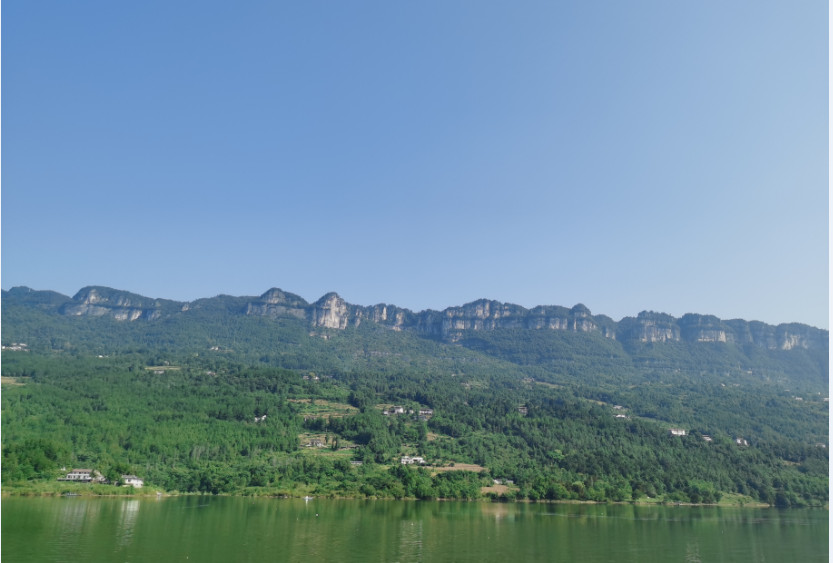 沿途山峰连绵,犹如城墙,江山美好,若无青山下民居,缺乏生动,江山是要有人看守的,连绵的城墙,虽万人同时攀之,亦如蚂蚁攀城墙,不足为道。