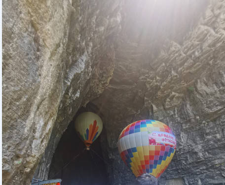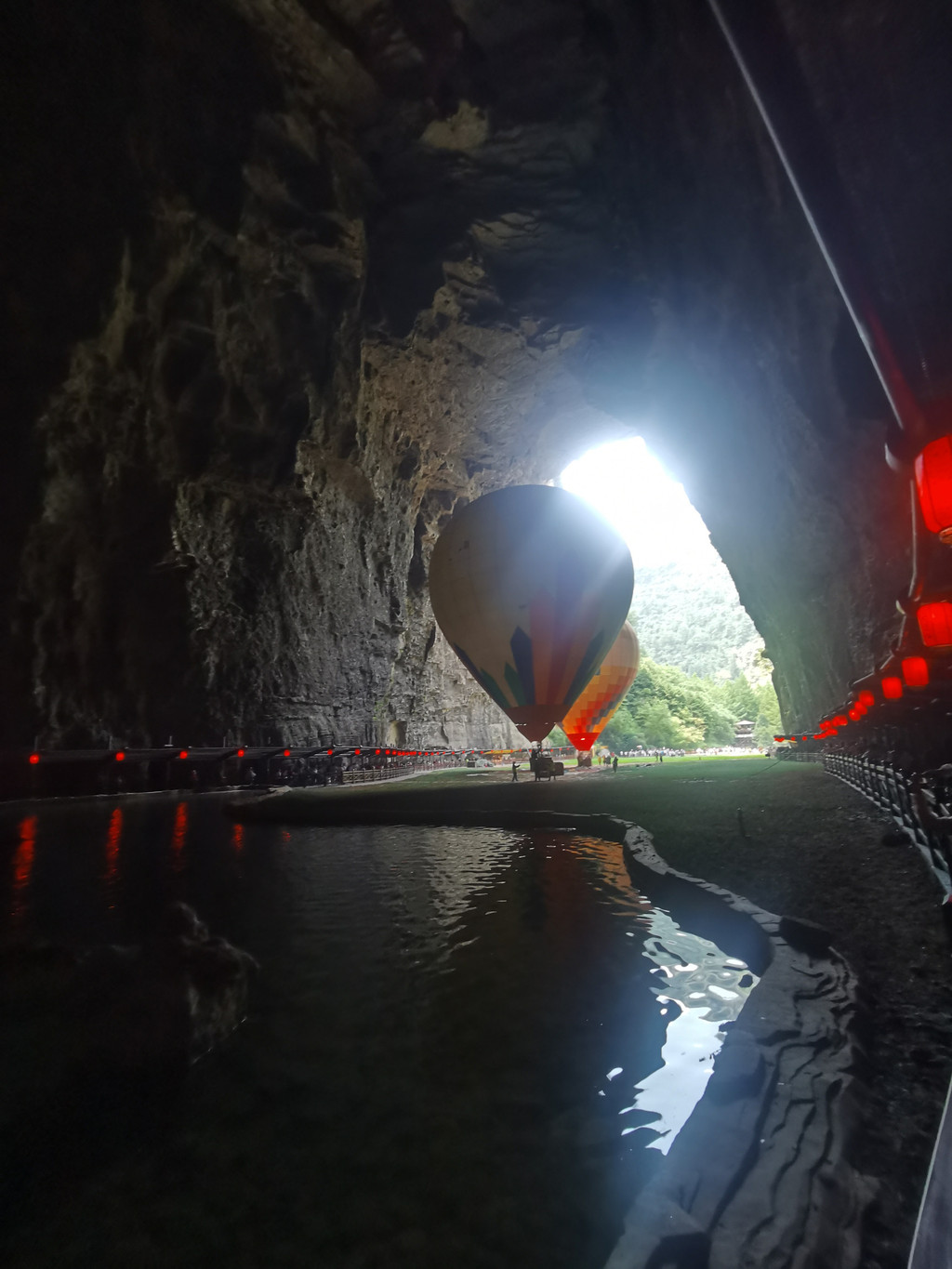 洞门口有两个待飞升的气球,对比其洞口的开阔。当然顺便也有上也运营的意图,出钱即可体验。