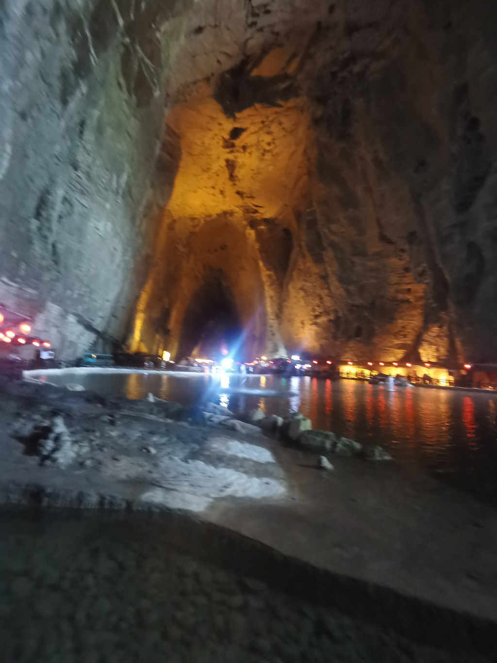洞内幽深,空旷,需要电瓶车整体接送入洞,可见其大陆第一大洞的确所言非虚。
