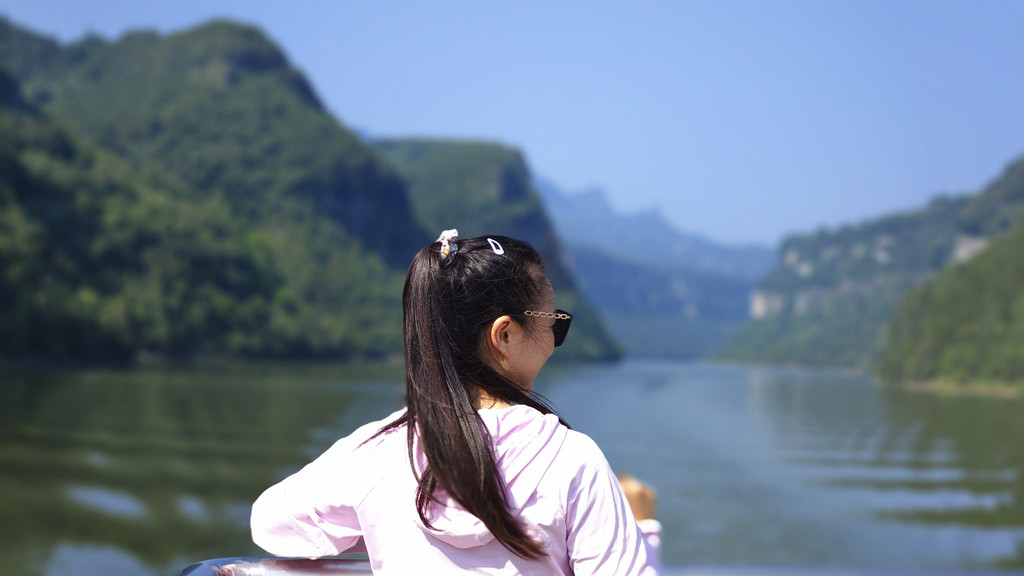 顺便说说导游,名叫张琼成。团队有人在清江游览时拍摄了一个背影。