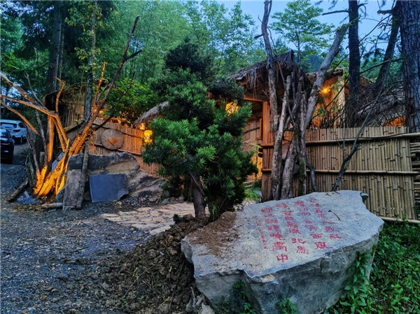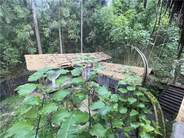 暮色四合时,草堂里暖黄的灯光次第亮起,与周遭浓郁的绿意相互映衬。竹木结构的小屋,茅草覆顶,质朴又充满野趣,像是从童话里走出来的模样。屋内隐约透出的光影,给人一种温馨又神秘的感觉,让人忍不住猜想,里面是否正发生着什么有趣的故事。