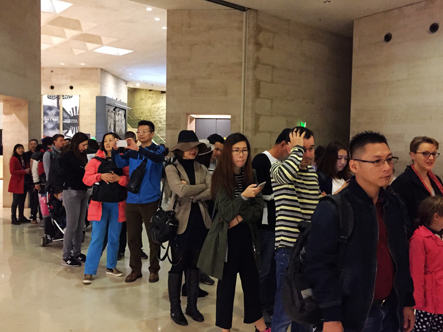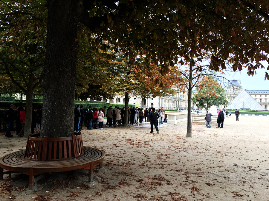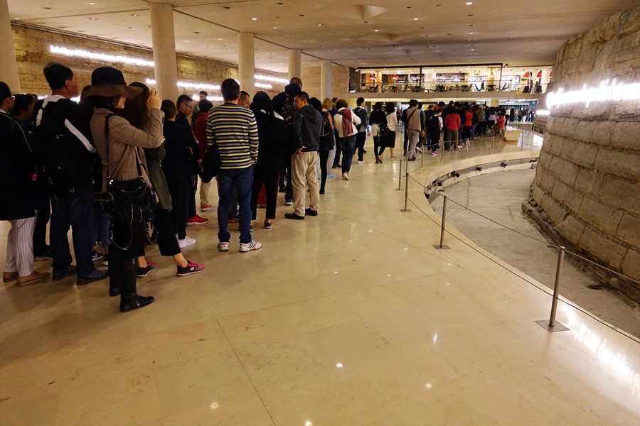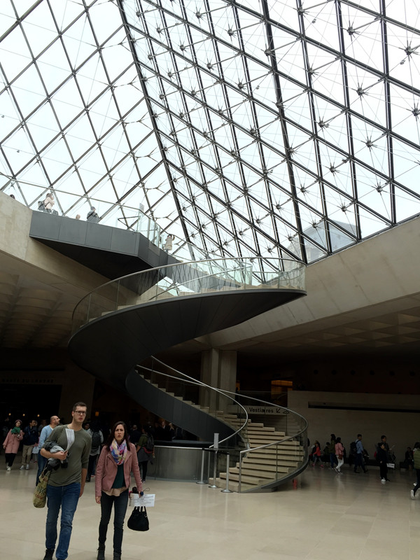 清晨8点的巴黎天还没亮,我们就出发了。一个多小时的路程来到罗浮宫。令我们惊讶的是,进入罗浮宫的队伍已经从内到外弯弯曲曲如蛇状的队伍排了好长好长,排了将近45分钟才得以进入。