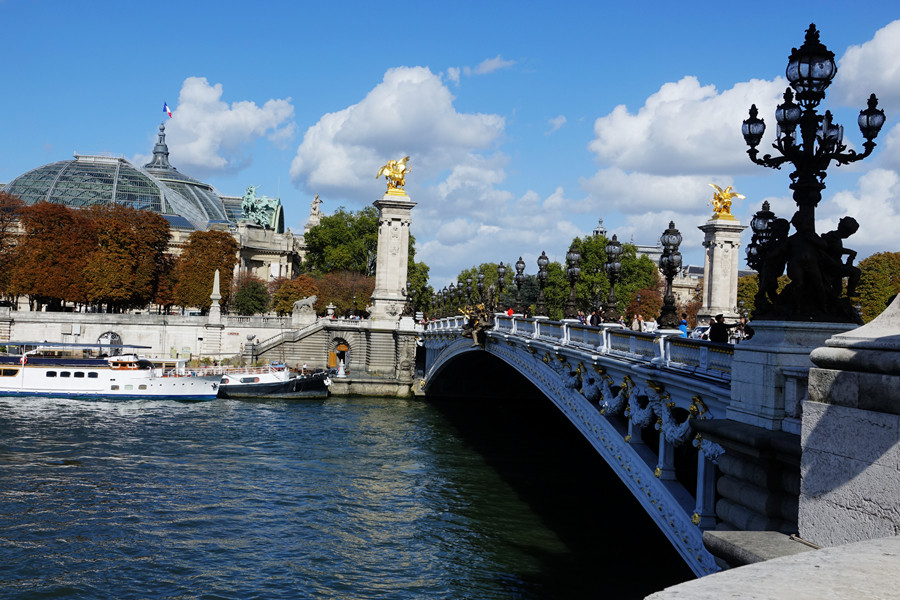 除了两岸的风景,塞纳河上最靓丽的一道风景莫过于那一座座桥,据说有36座,每座桥的造型都各有特点,其中最华丽壮观最金碧辉煌最漂亮的是亚历山大三世桥、曾挂满爱情锁的艺术桥、明明最古老的巴黎新桥……。