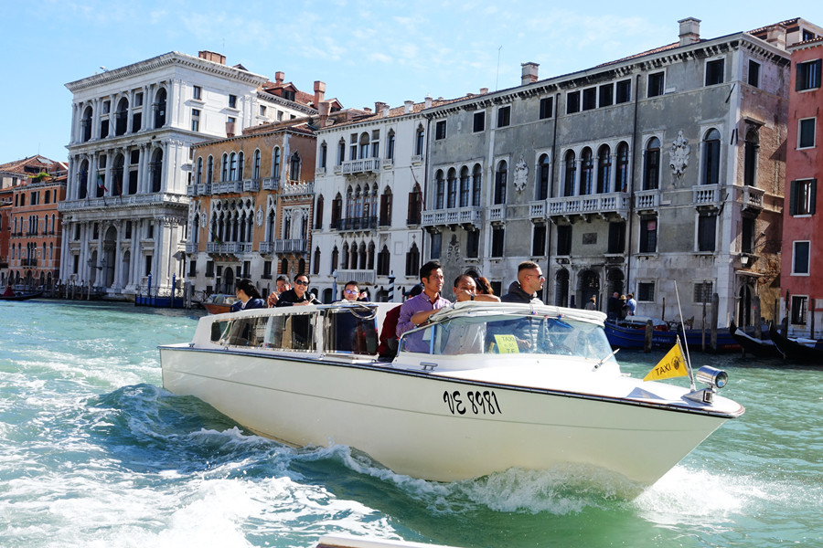 但要欣赏游览整个大运河风光,只能乘坐汽艇。10点钟当我们在圣马可渡口乘坐汽艇出发时,大家才恍然大悟,原来我们zuo的不是贡多拉啊!李导向我们解释,如乘坐贡多拉游览整个大运河,就是划到晚上也不可能完成,坐汽艇游威尼斯黄金大运河是必然的选择。