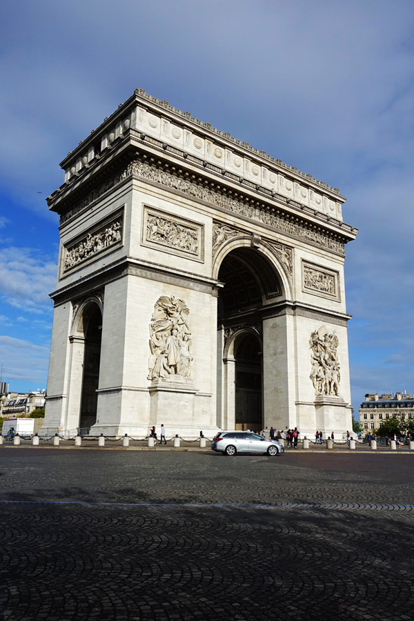 巴黎有16座凯旋门,都是为迎接拿破仑一世外出征战的军队凯旋而建,其中有15座是胜利凯旋门,唯有我们游览的这座,是在拿破仑与俄国之战战败后建好的,他没有亲眼看到。这座雄伟的建筑是1806年拿破仑一世下令修建纪念帝国军队在奥斯特尔里茨战役中打败俄、奥联军,取得胜利而建的,它代表了拿破仑军队的战无不胜坚不可摧。但在建造过程中,工程曾一度受拿破仑帝国的灭亡及旧君主制的恢复的影响而暂时停工,工程在1825年重新开工,1836年完工。如今成了巴黎的一个标志性建筑。