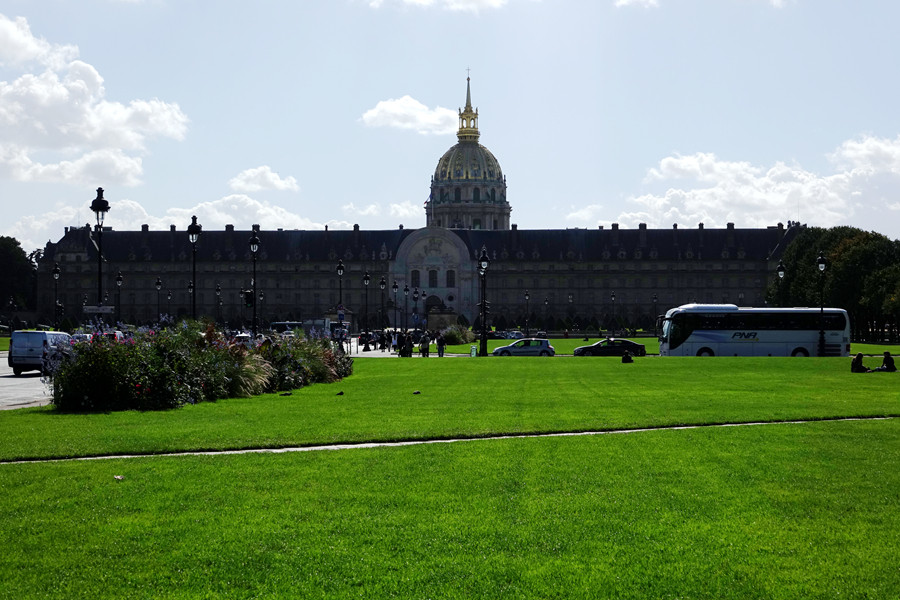 位于的巴黎塞纳河南岸的荣军院。法国历史上著名皇帝拿破仑的灵柩就安葬在这里。 拿破仑墓室经过 20 余年的施工才全部建成,所用石料是从俄国运来的。停车在附近,让我们有机会远眺拍个照并上亚历山大三世桥上走走。
