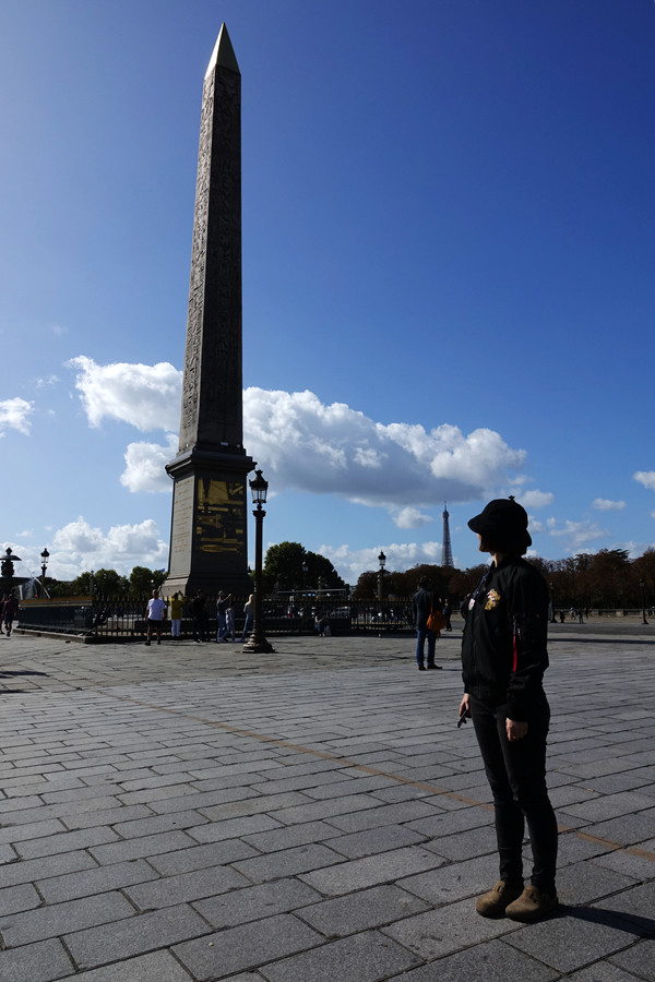 协和广场正中心矗立着一座高23米,有3400多年历史的埃及方尖碑,这是1831年由埃及总督穆罕默德·阿里(Muhammad Ali)赠送给法国的,碑身的古文字记载着古埃及拉美西斯法老的事迹。在埃及的卢克索,我们也见到了一模一样的方尖碑。运输这块23米高,230吨重,由一块完整的巨形玫瑰色花岗岩雕琢而成的方尖碑,在当时的条件下,可见难度有多大!据说花了整整两年半的海上运输才到运抵法国。