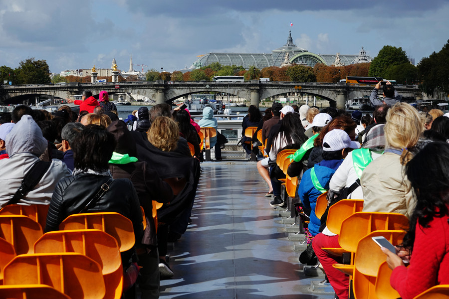 雨后的巴黎阳光明媚,午餐后我们登上了塞纳河游船,一个有三百个座位、分为上下两层的游船。我站在甲板上,沐浴着温暖的阳光,用手中的相机和游船抢速度,拍摄河两岸那些永远不变的经典。