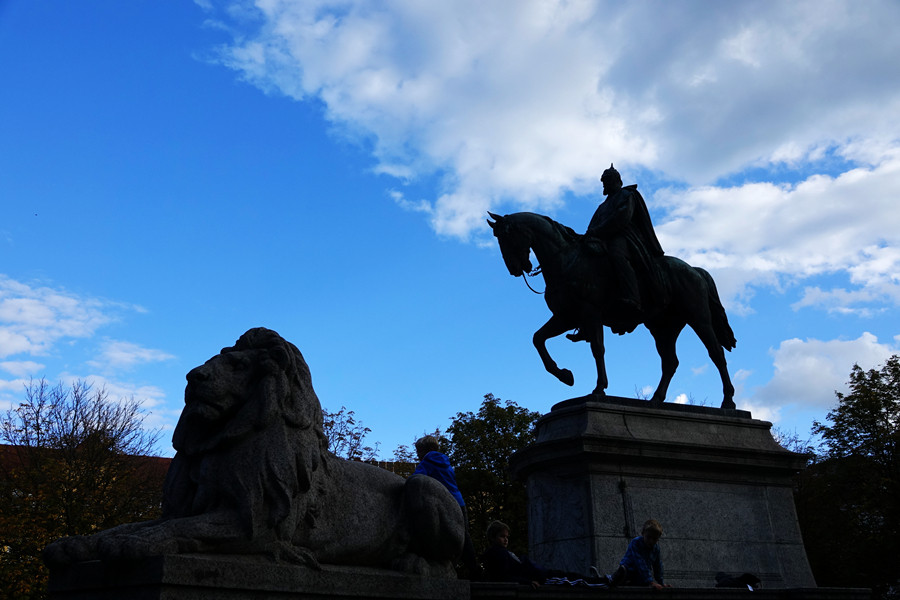 我们集合在佣兵凉廊(当年此处驻扎令人畏惧的德国雇佣军),荷枪实弹的士兵就在我们身旁,密切关注着广场人群的动态。当天是周日,广场上的人越聚越多,见到两队头顶着羽毛帽子、穿着统一服装、吹着管乐的乐手(大多数年龄较大),从圣百花大教堂方向向领主广场走来,不知道什么节日或什么活动?广场上人声鼎沸管乐齐鸣,好不热闹,几乎被占满了。游人们夹杂在其中,分享着快乐!