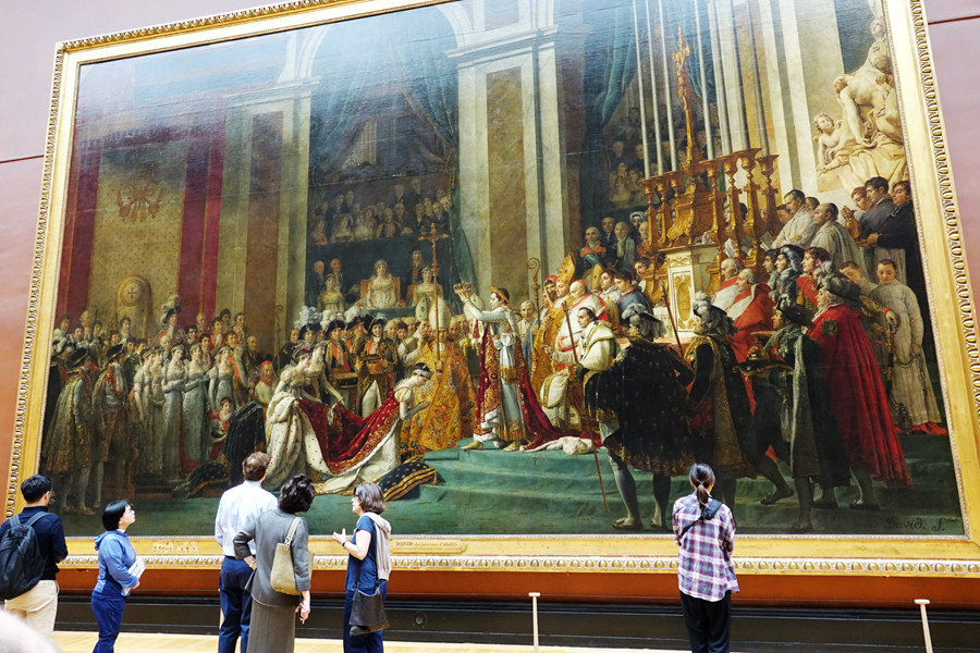 《拿破仑一世皇帝的加冕礼》是法国的杰克·路易斯·达维特创作的一幅油画,画家忠实记录1804年12月2日在巴黎圣母院隆重举行的国王加冕仪式的一幅油画杰作。为了巩固帝位,这位皇帝极其傲慢地让罗马教皇庇护七世亲自来巴黎为他加冕,目的是借教皇在宗教上的巨大号召力,让法国人民以至欧洲人民承认他的"合法地位"。在加冕时,拿破仑拒绝跪在教皇前让庇护七世加冕。而是把皇冠夺过来自己戴上。大卫为避免这一事实,煞费苦心地选用皇帝给皇后加冕的后半截场面。这样,既在画面上突出了拿破仑的中心位置( 拿破仑站起来给皇后加冕),又没有使教皇难堪。