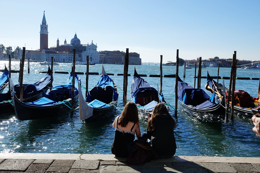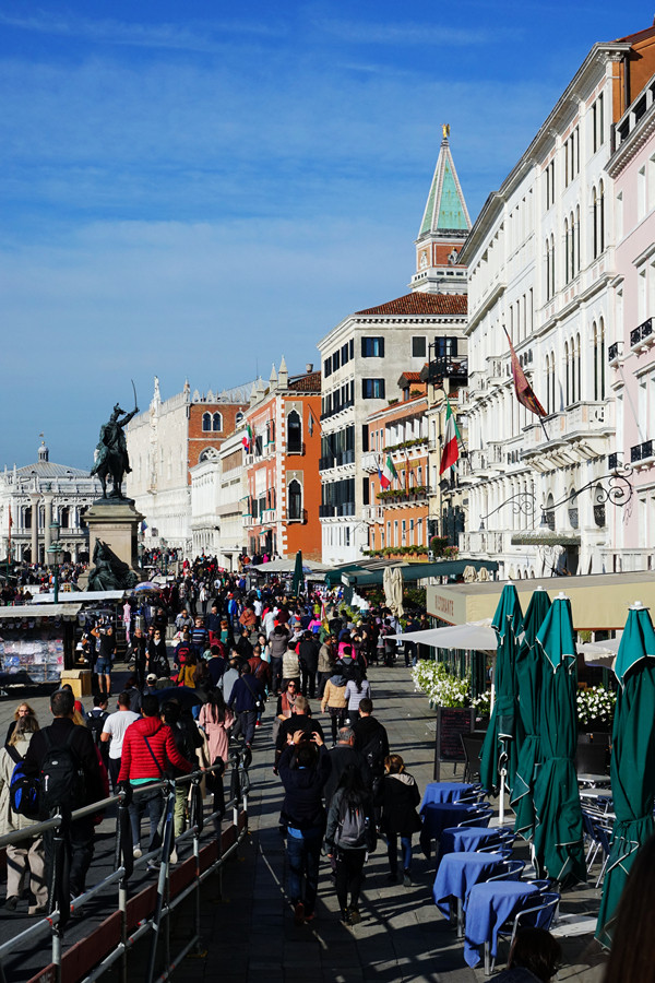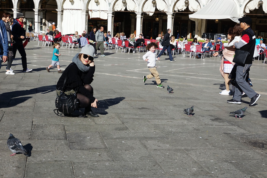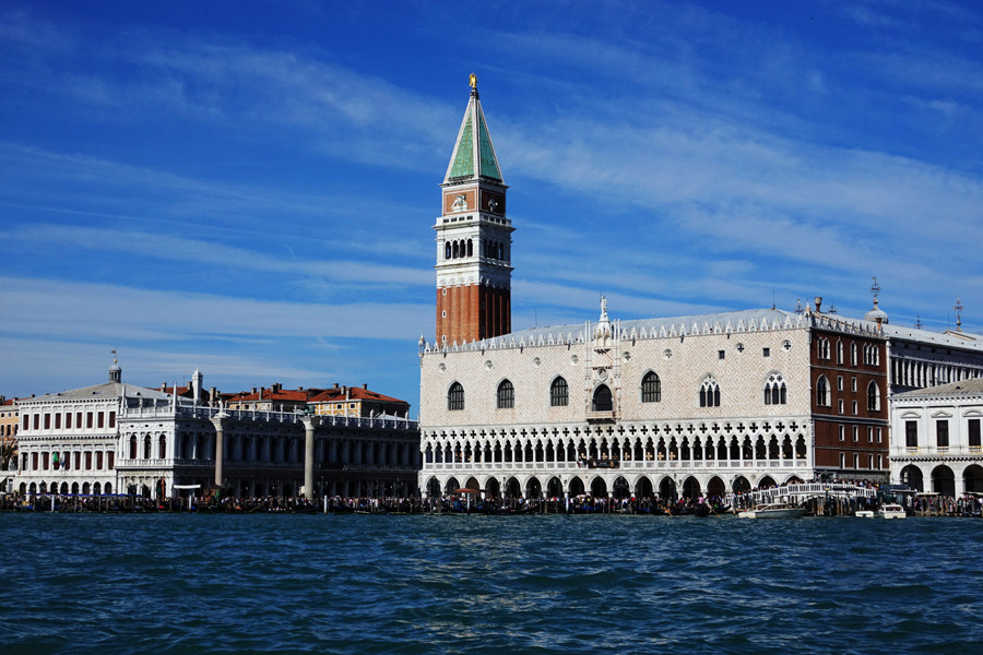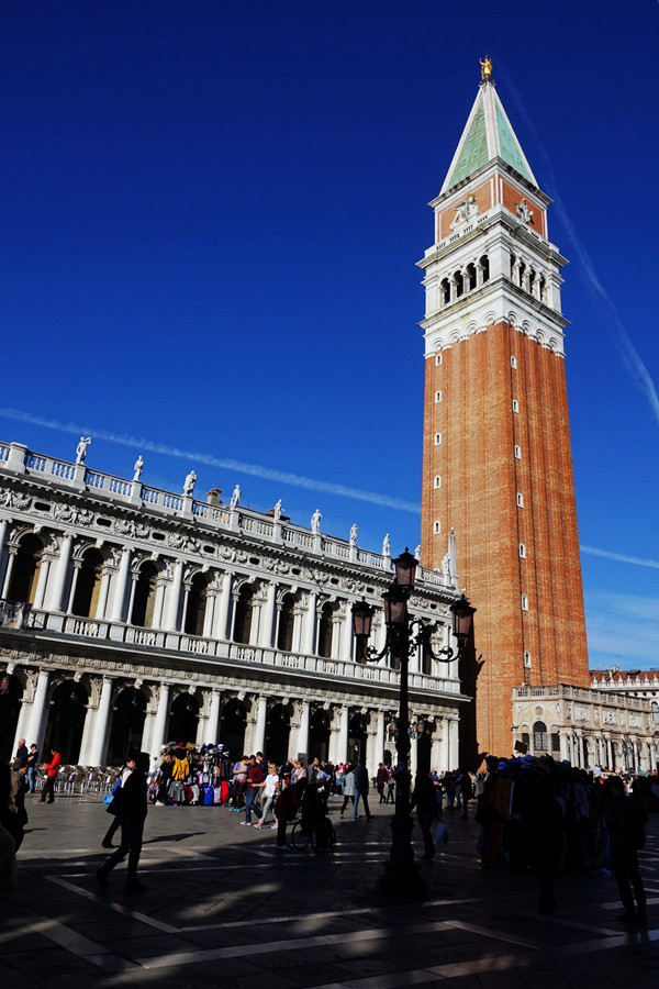 我们选择的是一个好的季节遇上了好天气。每年11月份到次年4月份,是水漫水城的季节,不是因为潮水漫过堤坝水淹水城,那些水是从石头缝里冒出来的!当天太阳高照,暖洋洋的太阳给这座水城带来了无限的魅力。一座座小桥、一条条小巷、一只只贡多拉小船、一艘艘水上巴士,串联起这座水城,水城上古老的建筑:圣马可广场、圣马可大教堂、钟楼、叹息桥、总督府……,又带给水城独特魅力!