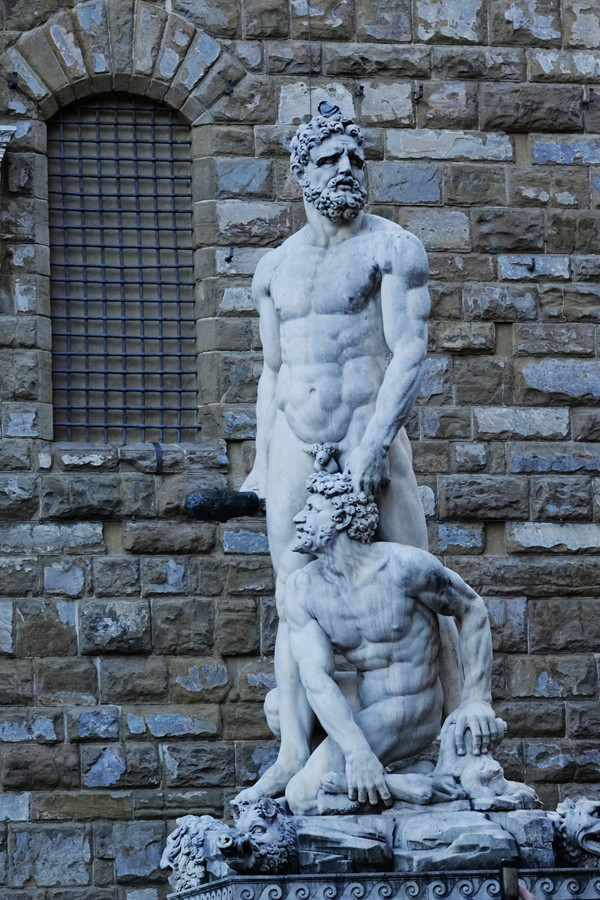 大卫雕像对面是海格利斯和凯克斯雕像,这是希腊神话中的两个人物,海格力斯是大力神,凯克斯是一个会喷火的盗贼。