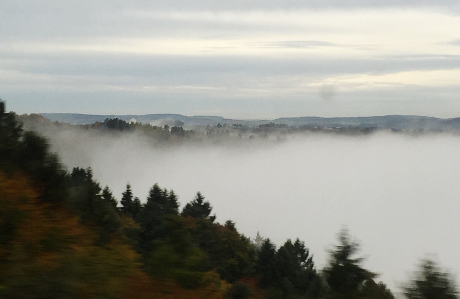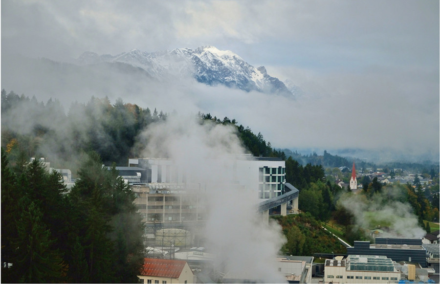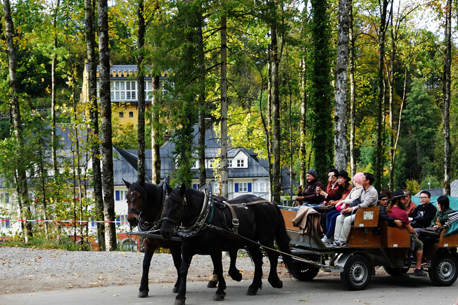 今天8:30出发,给我们睡了一个懒觉。早餐后步出酒店,一个位于富森山坳中、毗邻奥地利的酒店Euro Park Hotel。一夜的骤雨,带来雨后天晴,山峦中雾霭缭绕,空气清新,秋风萧瑟,满地落叶。秋天将过,冬天还会远吗?