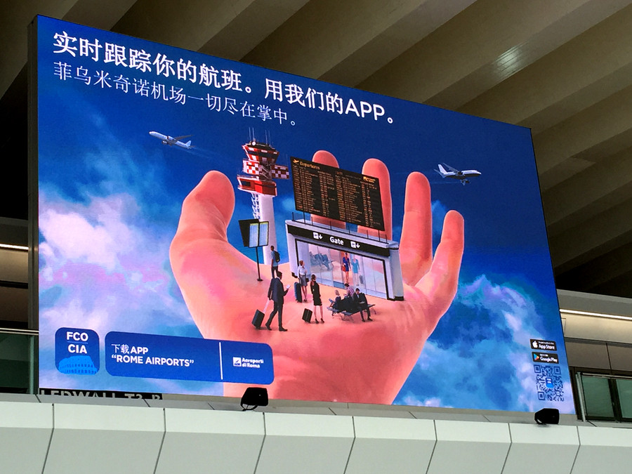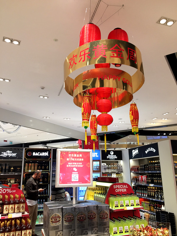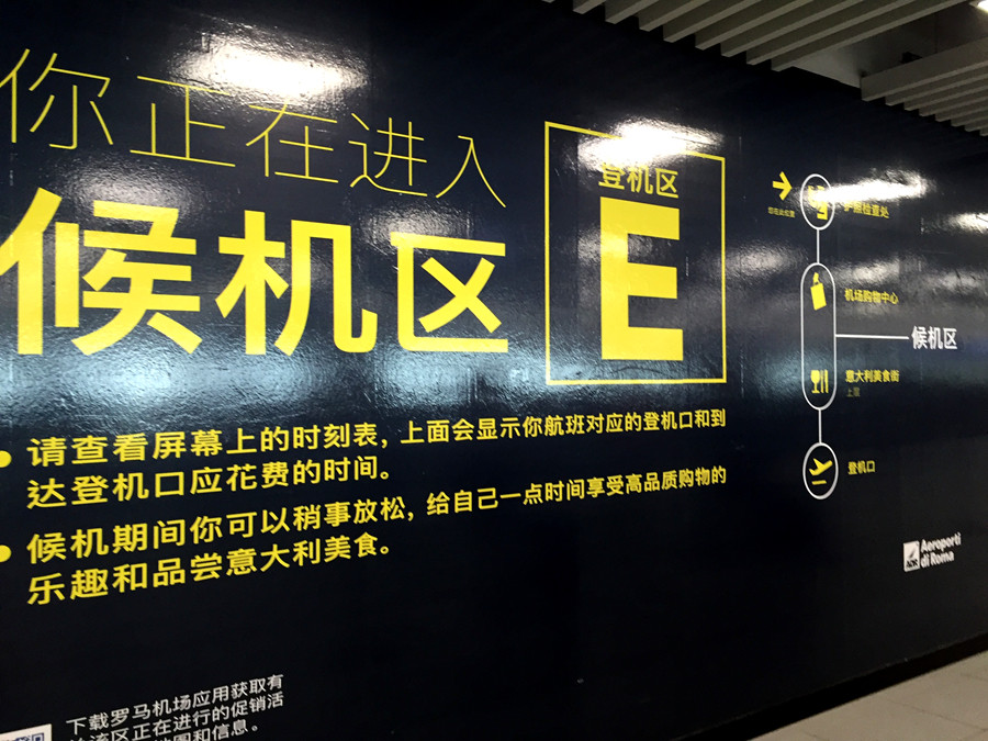 达芬奇机场是意大利第二大机场,非常重视中国游客,在值机处、在免税店都可以见到用中文书写的指示牌,看来如今的中国已走向世界,越来越得到认可!