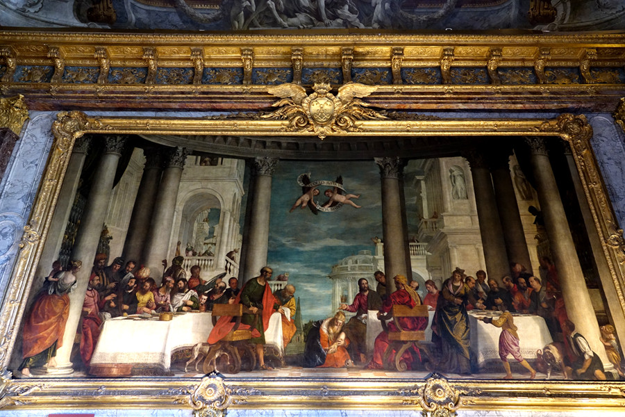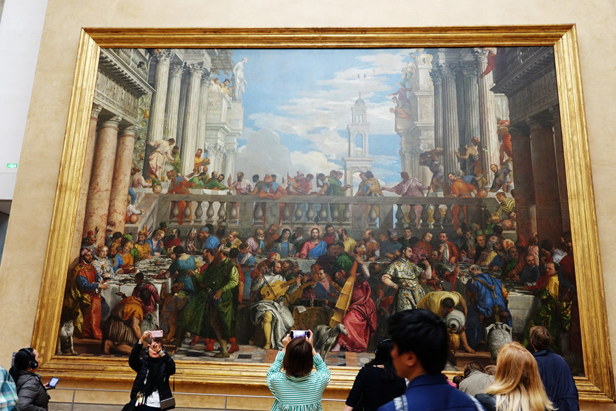 《迦拿的婚礼》,是意大利画家委罗奈斯的作品。最能显示委罗奈斯艺术成就的是他的一系列利用圣经题材描绘的宏大、热闹的宴会场面的作品,《迦拿的婚礼》就是其中的一件。这幅画是画家为意大利圣乔尔乔·马乔里修道院创作的大型装饰画,画的内容取自《圣经》故事,讲的是耶稣和圣马利亚以及使徒们在约旦河畔的迦拿这个地方遇到一家人家正在举办婚宴,主人邀请他们一起参加,婚宴上大家饮酒欢庆,后来酒喝光了,耶稣将坛中的水变成了葡萄酒,大家又继续喝酒欢乐。