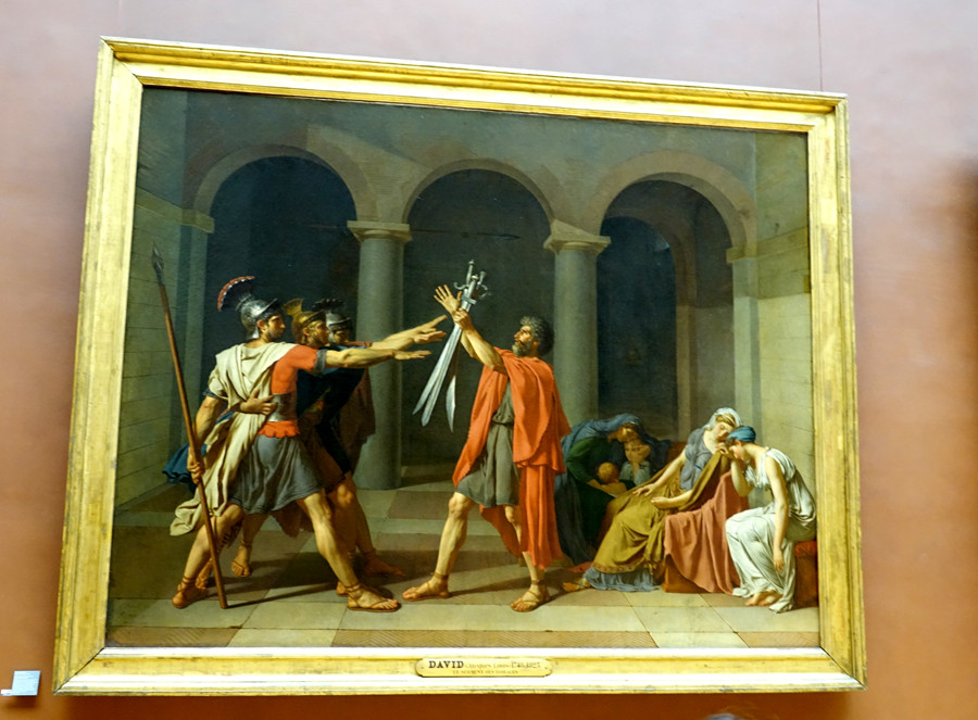 《荷拉斯兄弟之誓》是法国著名画家,古典主义画派的奠基人雅克·路易·大卫的作品。原本是法国国王路易十六在1784年给大卫(雅克·路易·大卫)的订件。他接到任务后没有按照统治者的意愿去画,而是加强英雄人物的刚毅决心。画面上的气氛是明确的:为了民族的存亡,为了拯救祖国,只有牺牲家庭和个人的利益。画中主要人物的表情、动作激昂,后景上的古典建筑突出了这种庄重的气氛。当法国人民高唱着“不是获胜利,就是死亡”的革命歌曲奔向前线,和外国侵略军、贵族流亡者决战的时候,这幅画的鼓动作用是很明显的。