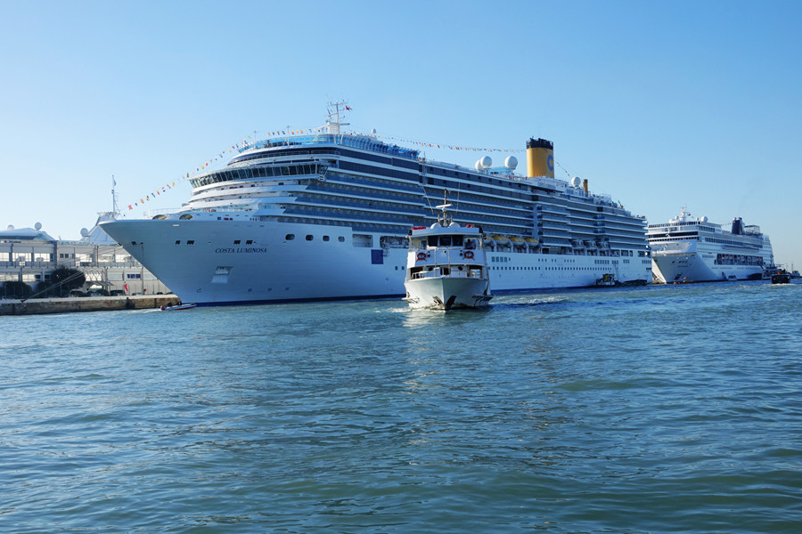 7:30出发,前往半岛威尼斯,提前去买进城票。如今意大利经济不景气,处处要留下买路线。今天进入威尼斯,就花了350欧的进城费。感觉这些意大利人就是在吃老本。行车一个小时来到威尼斯半岛码头,巨大的游轮停泊在岸边,出租港口也成为当地一个重要的经济来源,据说租金相当昂贵。