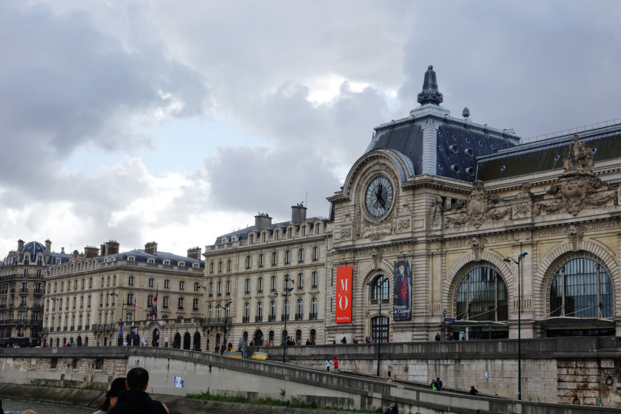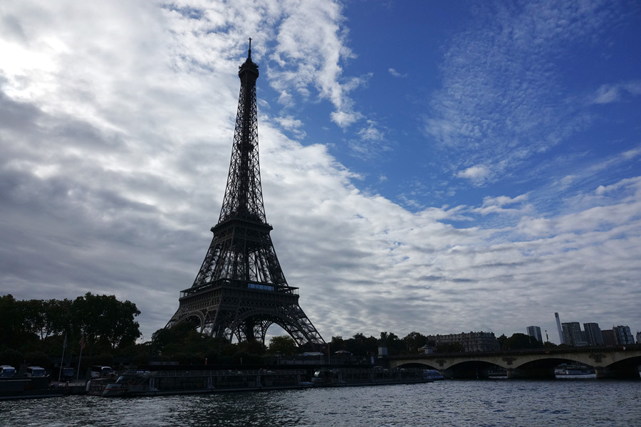 我们被带到塞纳河畔的船上吃午餐,站在河畔边仰望埃菲尔铁塔,高大雄伟,但逆光。行程中没有安排我们去埃菲尔铁塔前的草坪前,那里应该是观看和拍摄铁塔的最佳位置。
