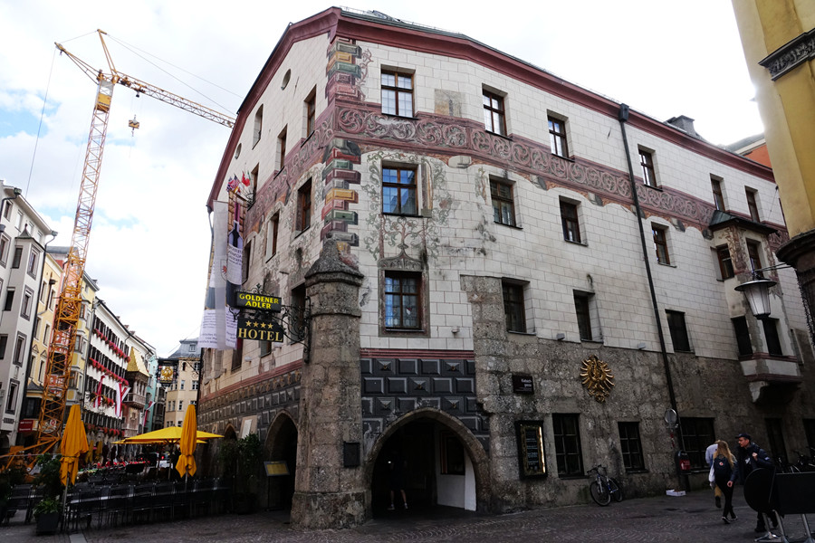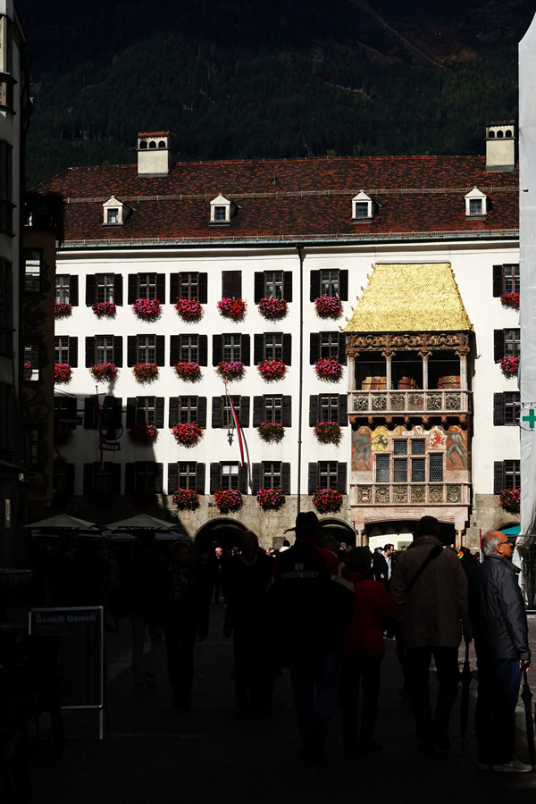 黄金屋顶,是因斯布鲁克的标志性建筑,以前这座建筑曾是公爵的府第。其出名之处是建筑物突出的阳台上装饰华丽的金色屋顶,整个墙面及阳台雕梁画栋装饰非常讲究,成为茵斯布鲁克的著名象征。