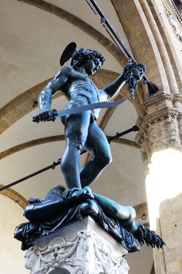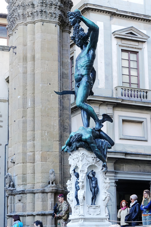 这是最吸引我的一座雕像。一位勇士一手拿着刀,一手提着一个刚刚被他砍下来的头颅,血淋淋的,是那样的真实,令我多看了几眼!百度后才知道这表现的是圣经里的一段故事。