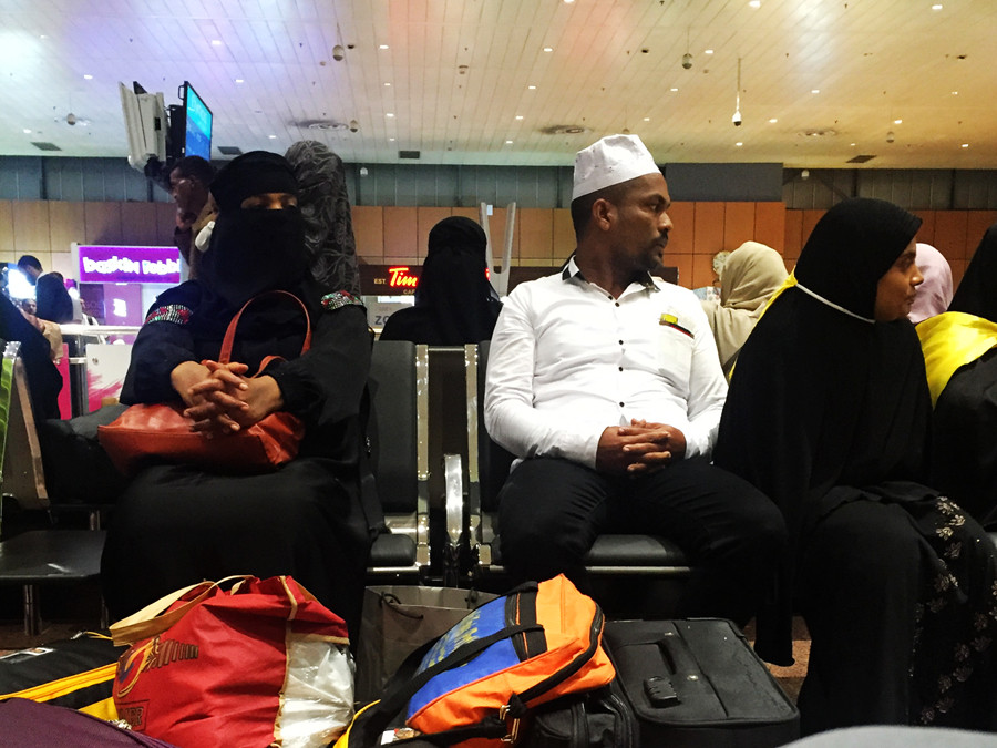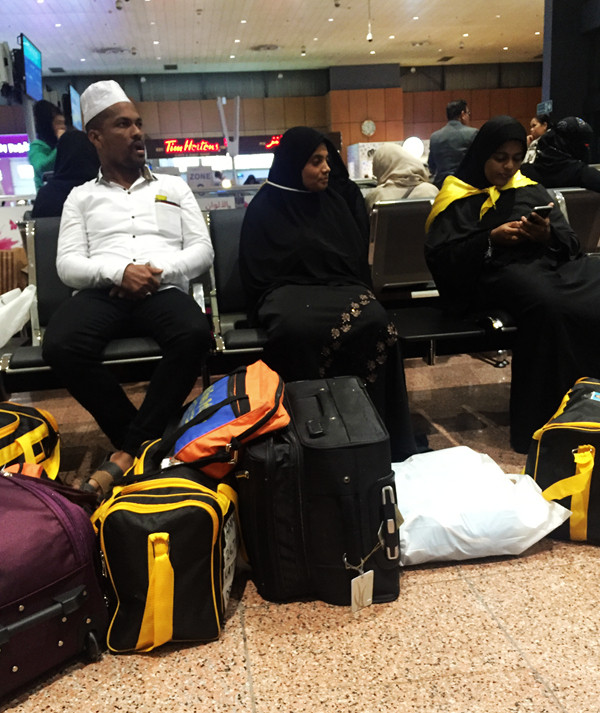 走出机舱,一阵热浪扑来,坐上区间车来到过境旅客入口处,心中的童话立刻被打破。简陋窄小的机场候机大厅,挤满了等候的人群,大部分是当地人,女人黑色长袍,男人白色小帽,似乎已容不下更多的游客了。好不容易在这些阿拉伯人群中找到一个座位,将就着坐下。本想玩玩微信,没想到竟然没有Wi-Fi!可见沙特阿拉伯再富裕,也还有其落后的地方。