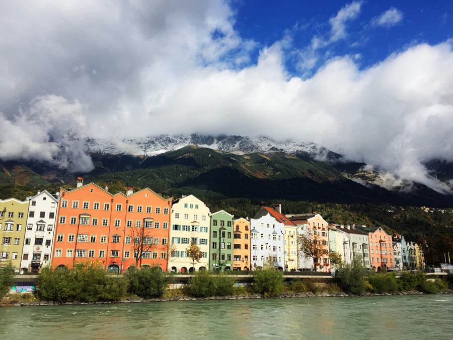 在因河旁那些五颜六色、但已有上千年历史的建筑。