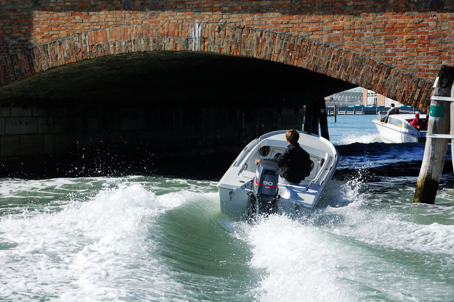 过了这个桥洞,经过那座现代桥梁,威尼斯行程就结束了。