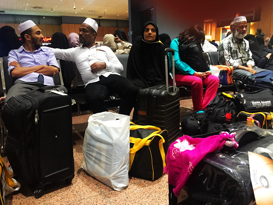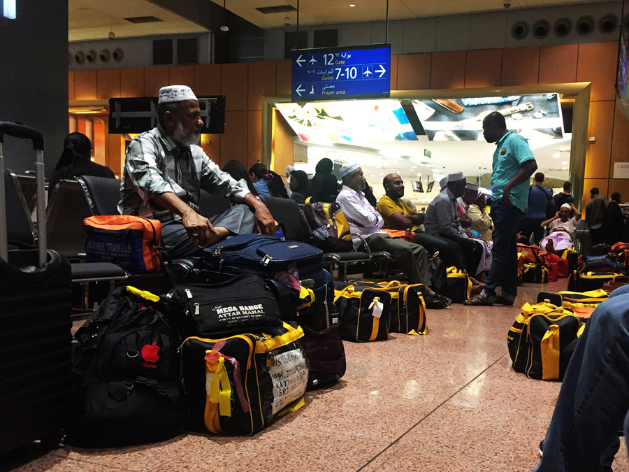 位于红海边上的吉达,多少让我们有些期待,毕竟是石油国家沙特阿拉伯的滨海城市,想象中的机场应该不会太差。当飞机在城市上空盘旋,见到地面一片灯火辉煌,我们知道吉达到了。