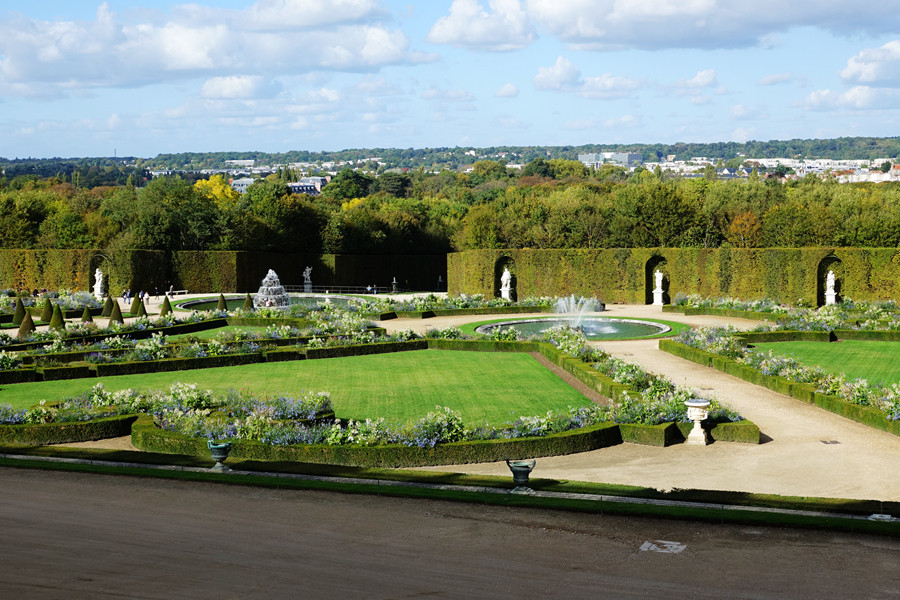 宫殿以西是一座修葺整齐的法式公园,公园绵延长达3公里,花园里景色秀美,一花一草,一水一池都让人惊叹,我们只能从室内向外眺望。遗憾的是要进入这座公园还要另收费,而在我第一次去时,是不用收费的。