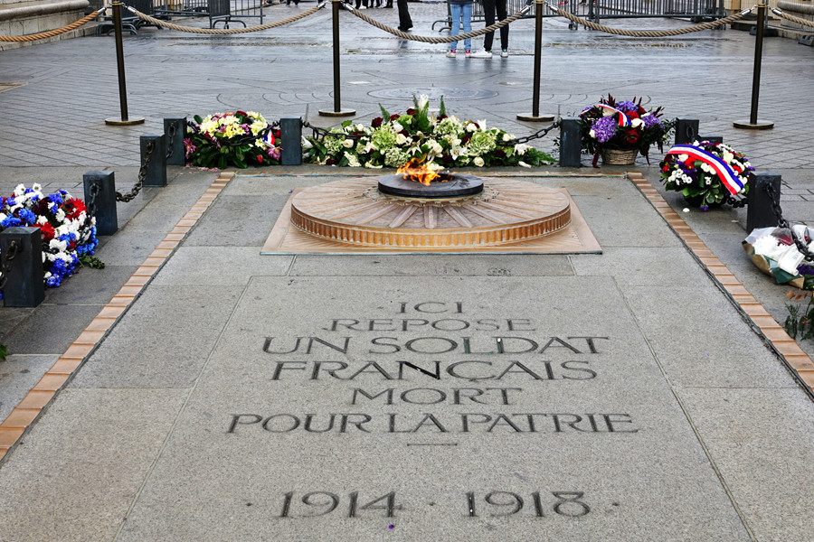 1920年11月,第一次世界大战后,在这座宏伟的凯旋门下又修建了一座“无名烈士墓”,里面埋葬着一位在这次大战中牺牲的无名战士。他代表了整个大战中死难的150万法国官兵。凯旋门下燃烧着长明火盘,几乎每天都有人来此献花悼念死难的将士,这为凯旋门又增添了一种悲壮的豪情。