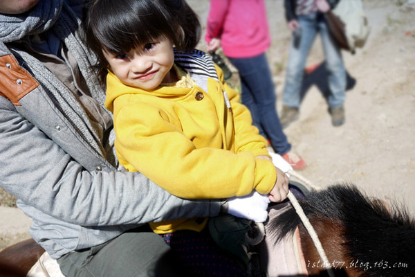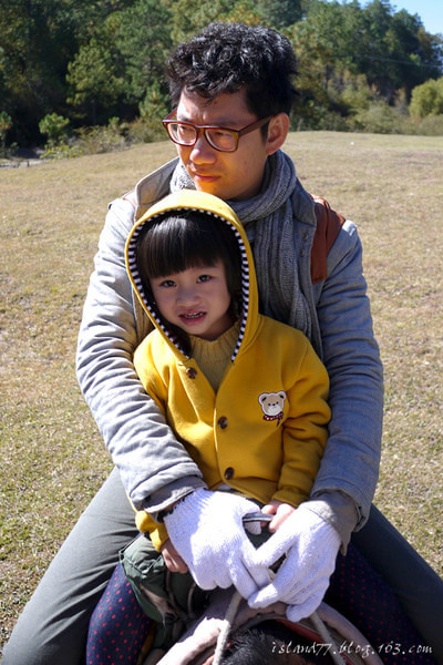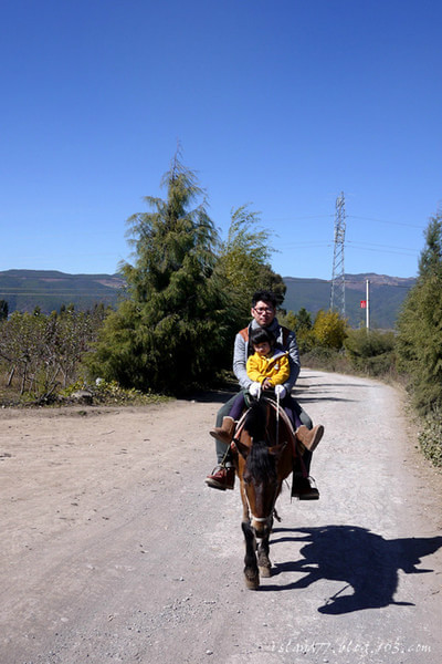 这是我骑在马背单手拿相机上给小昕和粑粑拍的喔,连拍了好多张,才有一两张没糊的