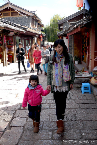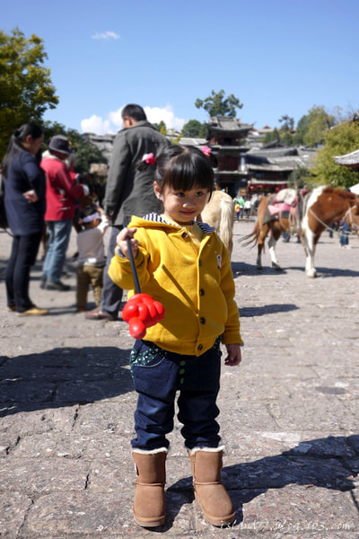 古城其实就是一个大的商业街,和小妞逛街真不省心,跑来跑去的,看到什么都要上前摸一把。