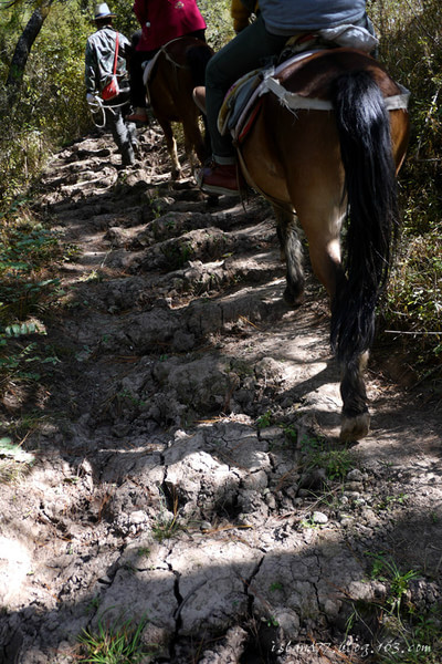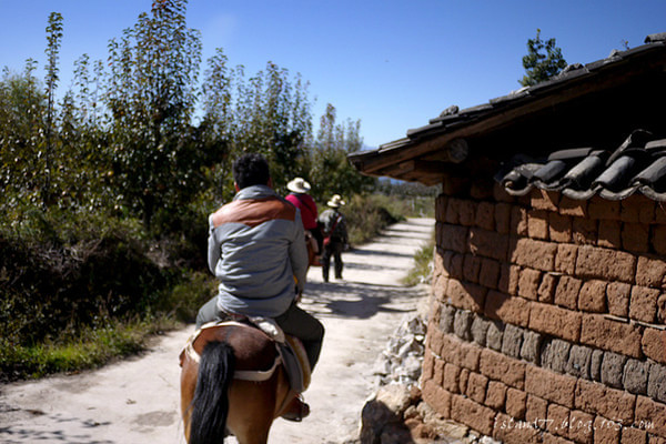 马夫说这就是以前的茶马古道,古老的chama,不过骑马走在这坑坑洼洼的泥地里,一颠一颠的还挺好玩的
