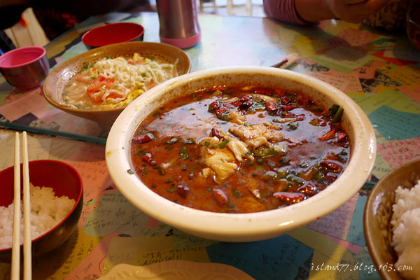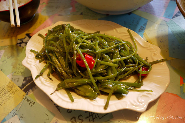 下山的途中经过一个小馆子,进去吃中饭,上面的就是大名鼎鼎的水性杨花,一种蔬菜,确实挺好吃的。不过水煮鱼一般,比较油腻,鱼也不够新鲜。米线味道还不错。