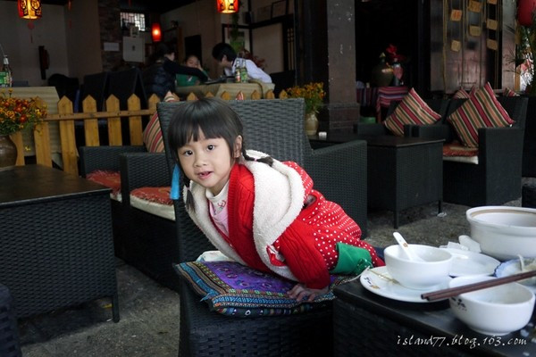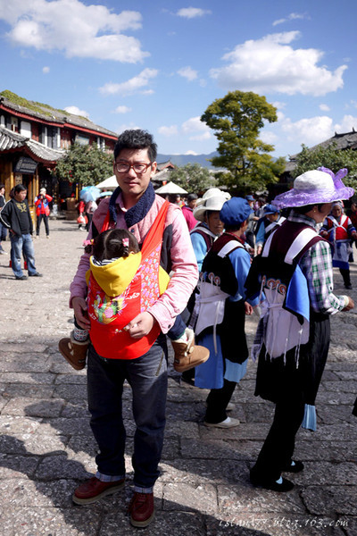本来打算带小昕回客栈午休的,谁知道小妞这时候醒了,还很HAPPY的和各位婆婆一起跳舞