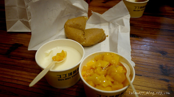 晚上老人带孩子睡觉了,我和老公出来逛,吃了点小吃,不过感觉都很普通,然后经过这家很多人推荐的丁丁酸奶就进去吃了,我吃了芒果口味的,还有2个现烤面包,结果就是因为这一吃。。。半夜我突然醒来上吐下泻,感觉整个胃里的酸水都被吐出来了,当然我也不肯定是不是因为这个酸奶,因为当时老公也吃了,他没事,但我就是连吐了一个晚上,第二天还发烧了。。。
