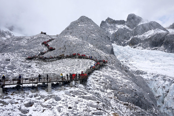 DAY5 昨天送小昕回客栈之后,和老公商量了一下,决定今天上玉龙雪山,既然去不了香格里拉了,总得去趟雪山,于是就打电话通知山羊叫他安排我们今天上雪山的。过了几分钟会,山羊给我们回电话说没问题你们准备一下,领队会来客栈接你们的。呵呵问了一下是不是前一天带我们去拉市海的领队啊,他说是的,心情激动啊,亲爱的领地,赞(备注他们的行程是赠送氧气和防寒服的)