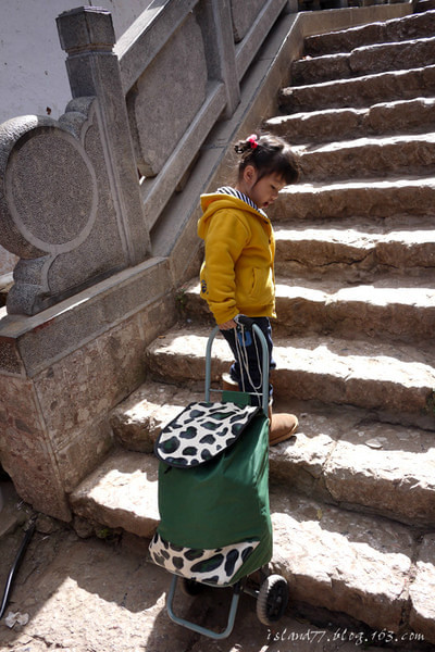 在四方街休息了一阵子,继续往狮子山方向走,小妞这会儿来劲了,还要求自己来拉车