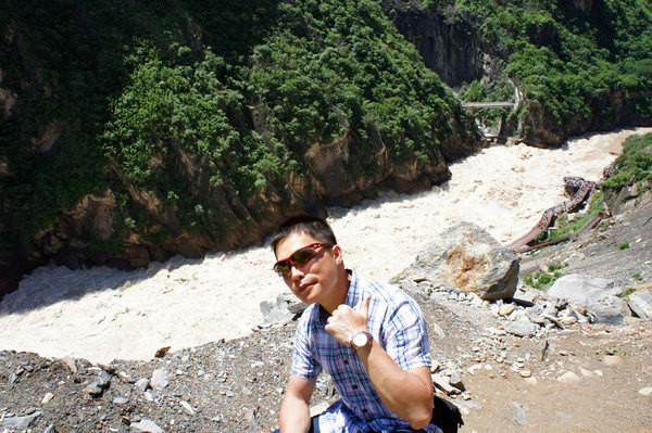 很累的一天,很开心的一天。有什么比遇到相谈甚欢的朋友更开心的事呢?这个朋友就是此次出行的领队,很实在的一个少数民族朋友。或许是因为年纪相仿(彼此同年)、或许是因为同样热爱大自然、或许是所谓的相见投缘吧。早上7:30在古城南门入口处出发,一路游览:观景台(20M)——长江第一湾(30M)——金沙江漂流(40M)——观光上虎跳(20M)——张老师客栈午餐后徒步中虎跳(4H)。下午4点多回程,到达古城口已经是6点多了。总路程耗费时间约4H。其实往返以上景点的路程并不算远,只是道路坎坷极不好走。在此也领教了领队的精湛车技,悬崖边上的一路狂飙和山路上的弯道超车,让我这个在初入大学就拿到驾照拥有将近十年驾龄的老司机也胆寒不已……此后听说走这条线路的旅游大巴通常要耗费5H以上的时间呢……