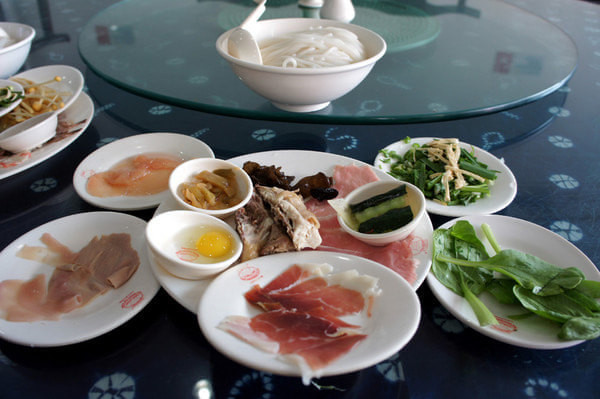 早餐尝试了传说中的老字号“建新园”过桥米线。说实话,对于吃遍两广的我来说,味道实在不怎地。汤水一般,所谓“米线”就是南宁常见的“圆米粉”,粉泡胀而无味并且散碎,不过十多元的价格有蛋(鹌鹑蛋一个)有鸡(两三小块)有叉烧(午餐火腿)的,也算过得去吧。也有30、40元的套餐,无非是多了一些海鲜、菌类、蔬菜等。