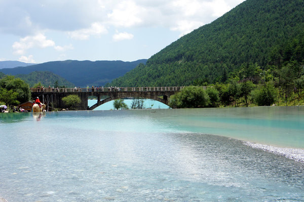 束河古镇规模较小,开发较少,可现在正四处动工(搞装修?),噪音很大,有点乡下大搞现代化的感觉……值得一提的是象山市场的东西的确好吃,至少比古城里要强多了,腊排骨洋芋鸡黑山羊什么的,大约50/人就可以吃得不错了(大胃王则无法保证)。古城外许多公交车可到此处,也就几站路程,十分方便。