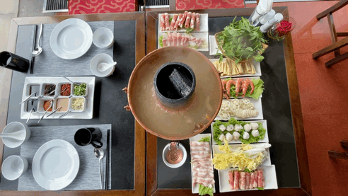 傍晚你可以选择酒店招牌的火锅试一试,有腊排骨、牦牛、鸡肉等选择,地道新鲜的食材搭配丰富的酱料、以及轻松怡人的环境,算是一顿难忘的火锅晚宴了。