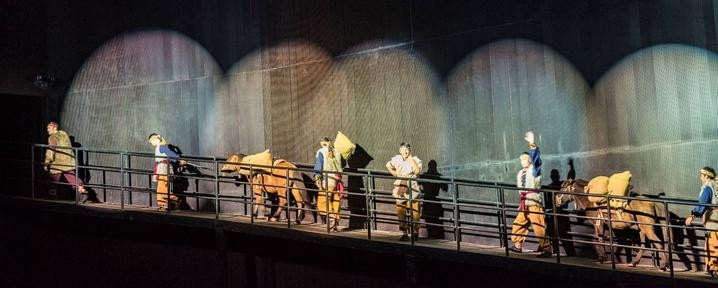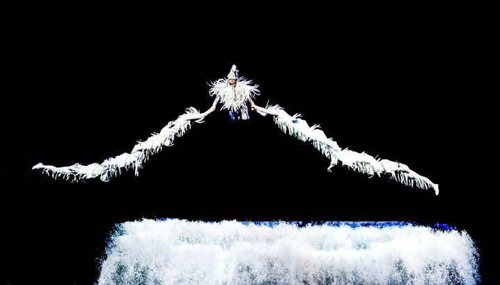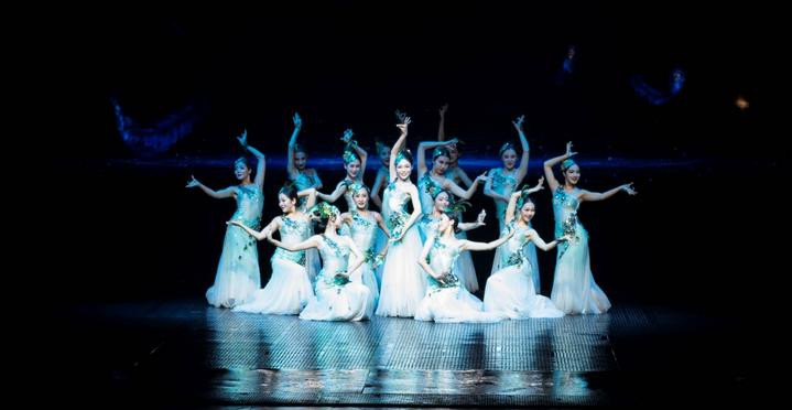 最震撼的有两幕:一是空中滑下的白塔,二是藏族歌舞表演时背后的雪山。当背景墙壁打开的一瞬间,外面的雪山与阳光投进来,当真是觉得神圣