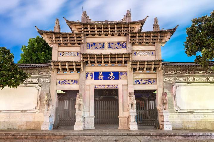 夜晚十一点的木府,“忠义”二字高挂牌坊中央,可见古时候的思想统治离不开 忠 字