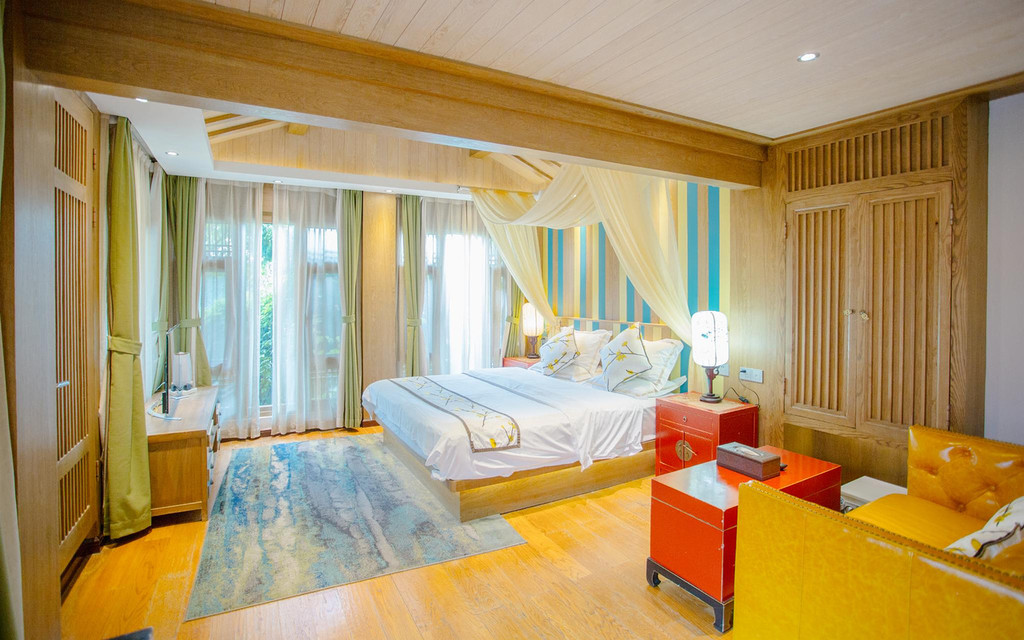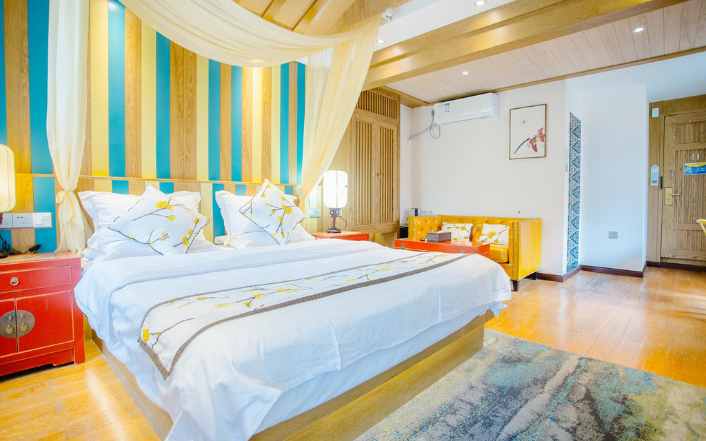 从客栈大堂一直往里走,推门而进就是宽敞而明亮的客房,配搭别致的家居设计,古色精致,让人更加住的舒心,高雅的白色与原木两者相结合,都让你倍感清新,充满闲情逸致。