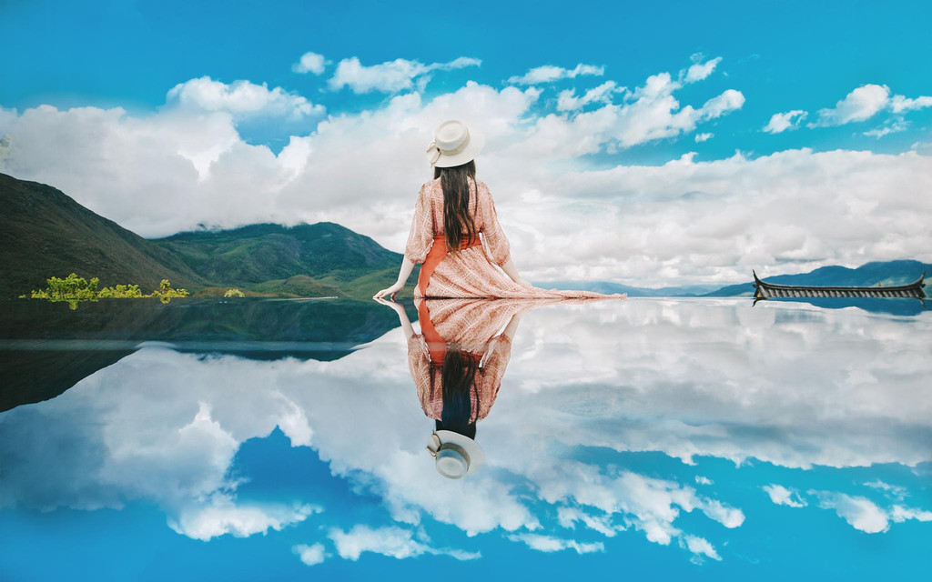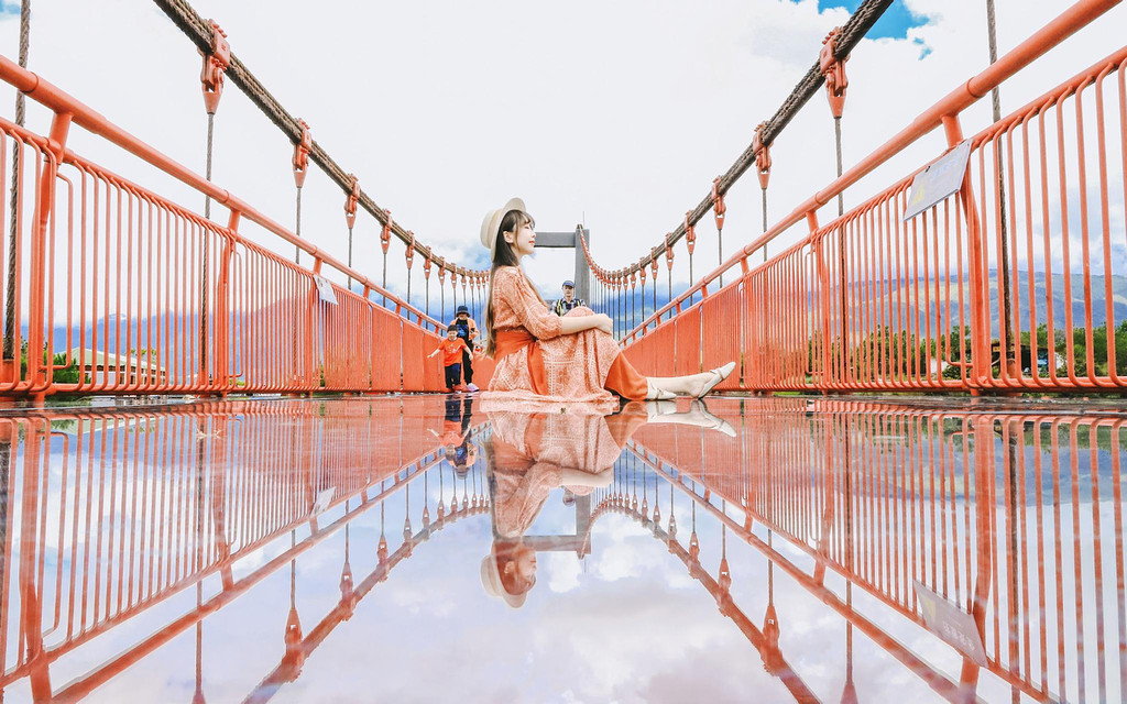 蓝天白云下,所有能看到的自然风景都倒映在这片“天空之镜”里,着一身长裙,随意在上面舞蹈,无论站着还是坐着,无论正面还是背面,无论静态还是动态,一定能满足爱美的你。