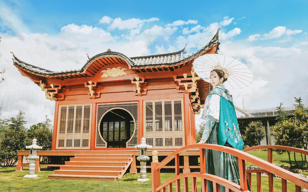 挑了半天的我选了一件比较素雅的衣服换上,再撑起一只纸伞从小桥流水中走过,只一低眉便婉转了雪山的山水柔情,妥妥的大片有木有!