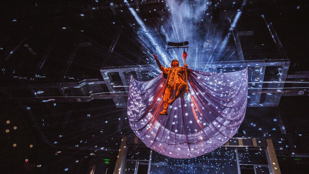 美轮美奂的场景布置,全场环绕式的观看体验震撼无比,无论是裸眼3D技术,还是全息投影技术、声光电的极致配合,让舞台艺术有了一个完全释放的空间,与此同时,演出还借助各种技术,将舞台范围延伸到了观众席,再加上舞美灯光的完美搭配,堪称一绝。
