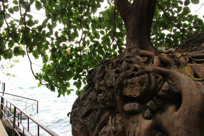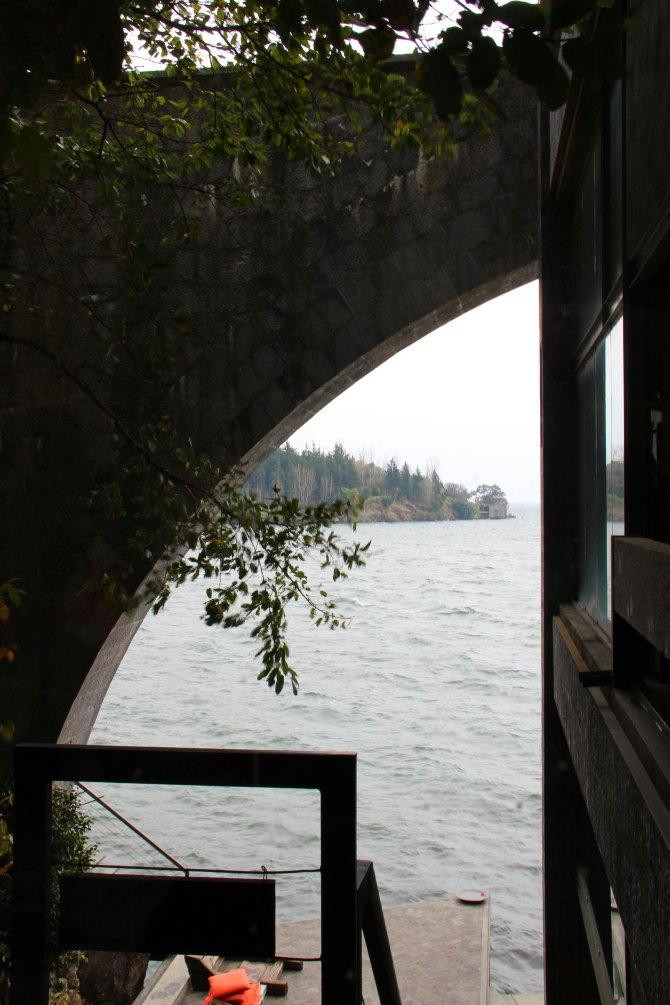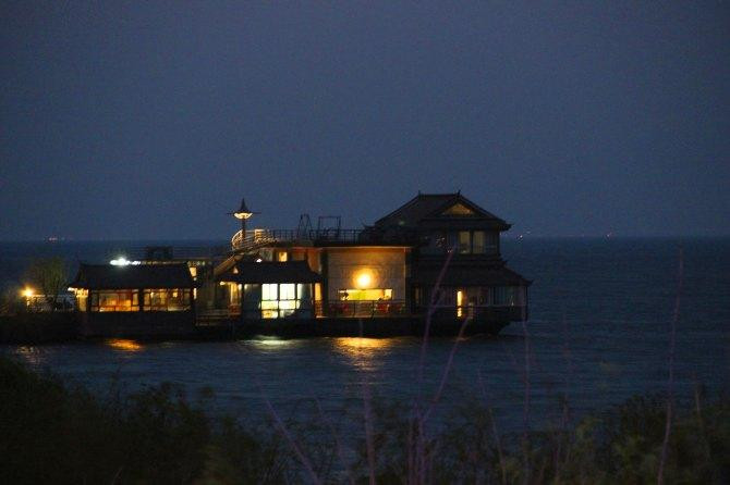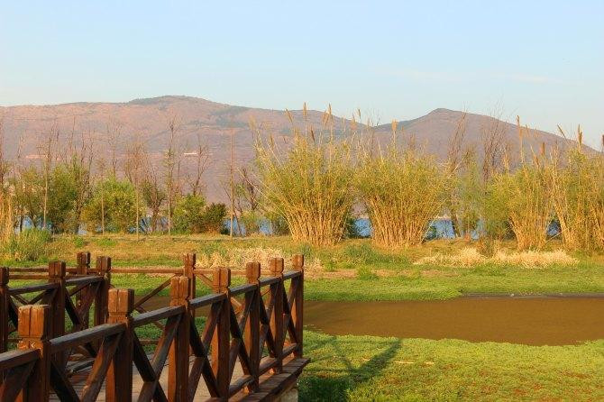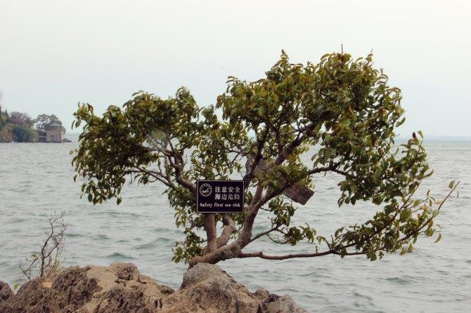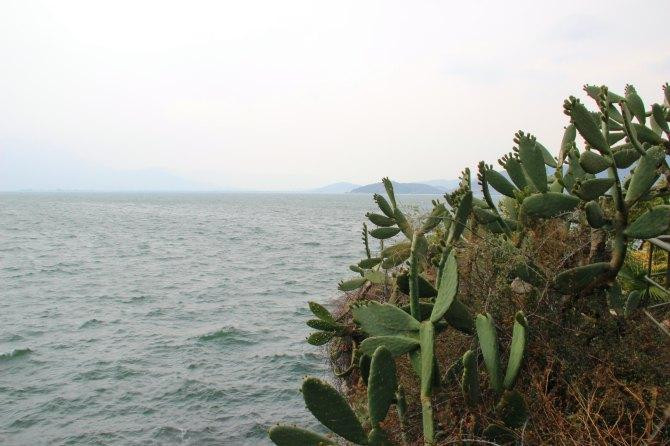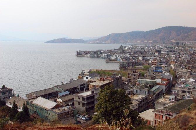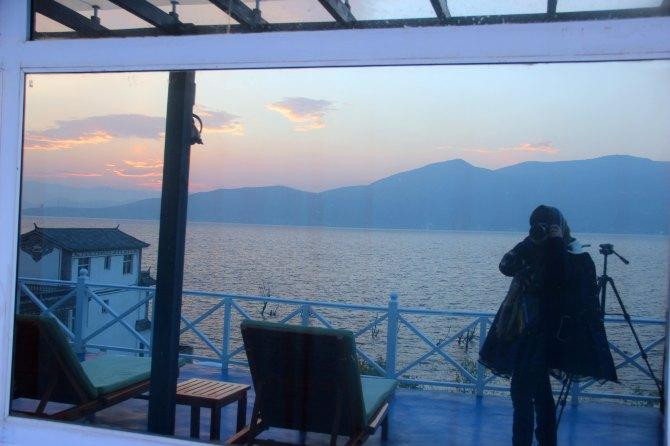当天风浪很大,阴晴不定,一会儿下雨一会儿开太阳,早早的就回去了,遇见来时的司机,带我们到了一处观景点,可以拍双廊的全景。